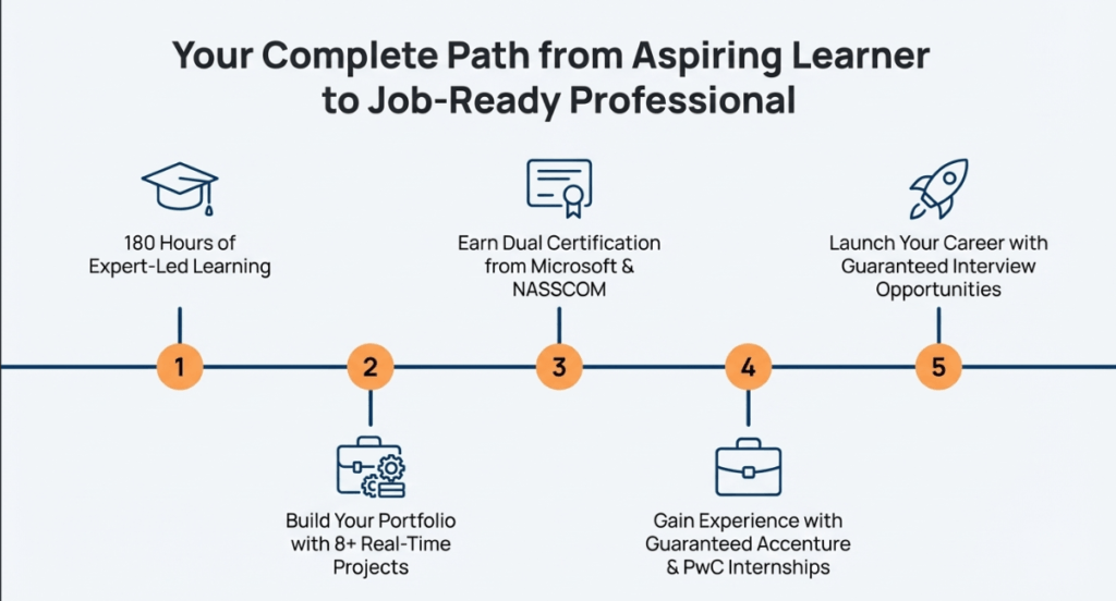 • Career Support: Get guaranteed interview opportunities and virtual internships with Accenture and PWC.