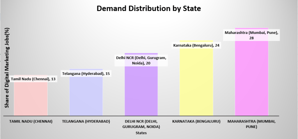 This distribution makes it clear that if you’re in Hyderabad (Telangana), you’re in one of the top 5 states for digital marketing careers, with plenty of opportunities across startups, corporates, and agencies.
