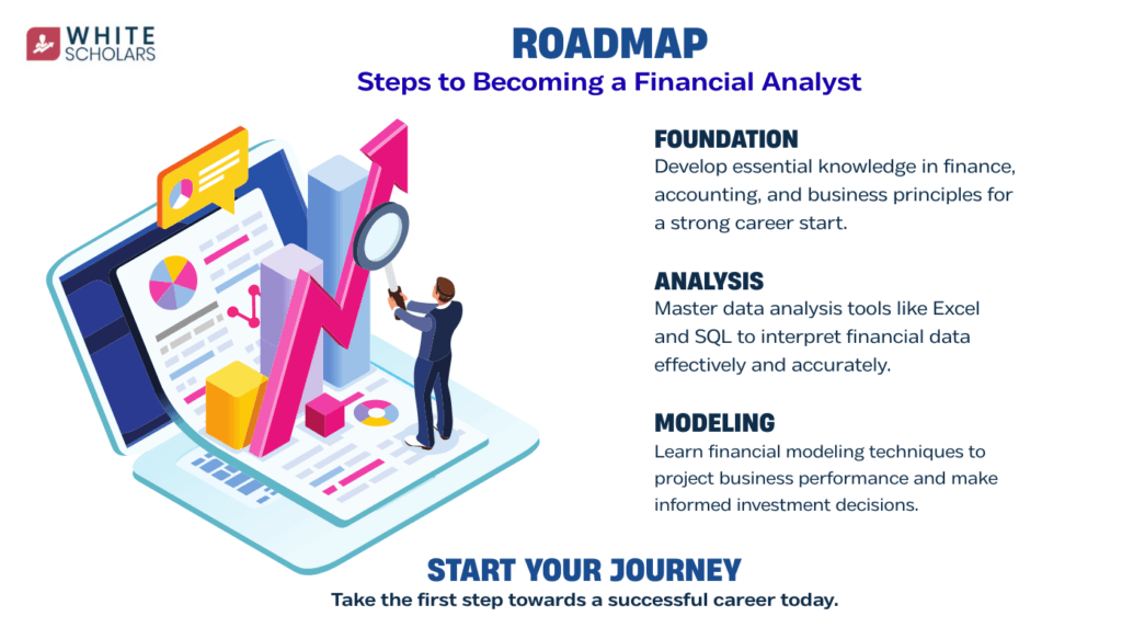 To become a financial analyst as a beginner or a fresher, a clear path is needed, requiring constant efforts, proper exposure, and a strong foundation in analyzing data. familiarity with software like Excel, SQL, Python, Tableau, and Power BI, alongside knowledge gained through a certification course.