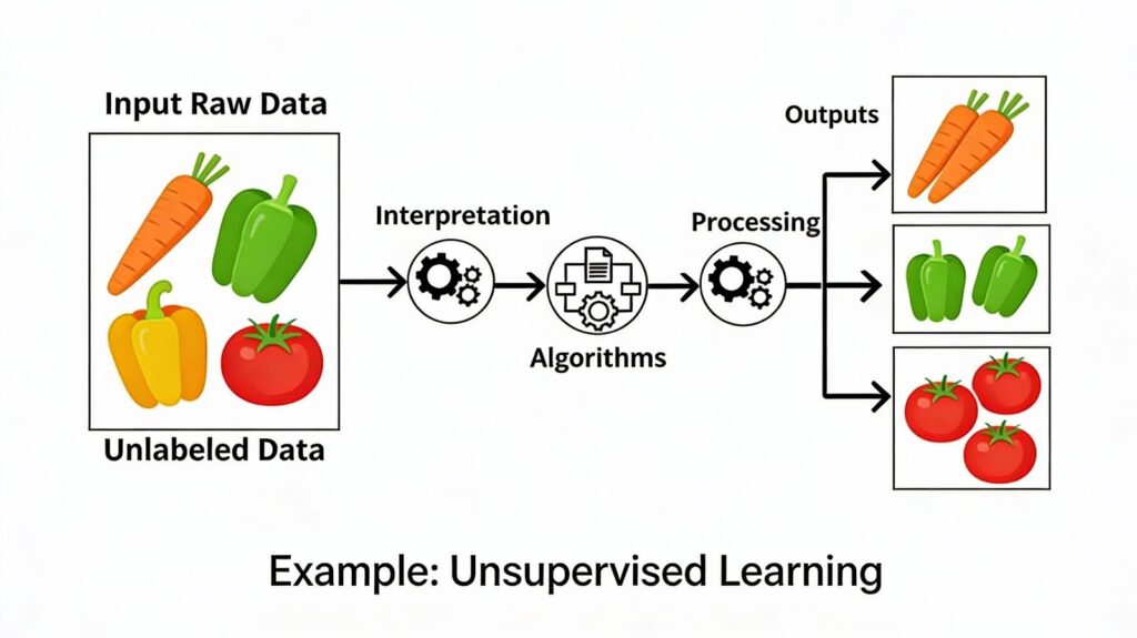 What is Unsupervised Learning, and how does the vegetable robot example illustrate it?