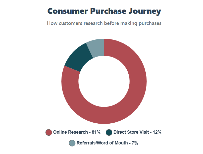 Today, 81% of shoppers conduct online research before making any purchase. Whether someone is looking for a salon, buying groceries, or hiring a plumber, the first stop is Google or social media.
