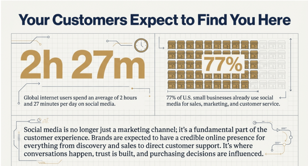 Roughly 77% of small businesses in the U.S. use social media for marketing, sales, and support. By the end of 2025, around 70–75% of businesses in India are actively using social media marketing as part of their digital strategy. This reflects the rapid adoption of platforms such as YouTube, Facebook, and Instagram, which collectively serve hundreds of millions of Indian users.