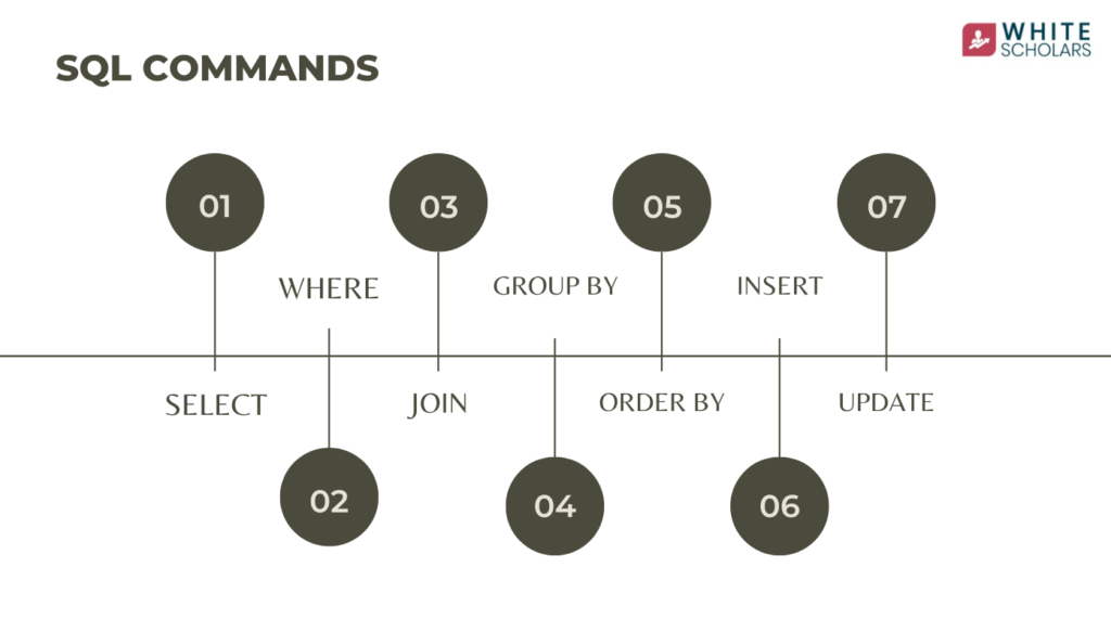 - These are SELECT, WHERE, ORDER BY, GROUP BY, JOIN, and LIMIT.