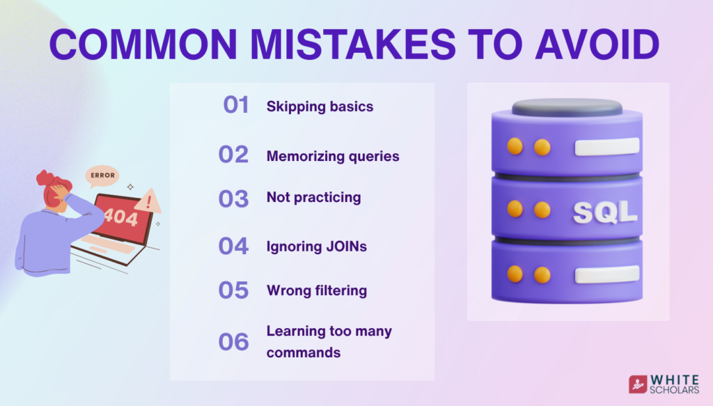 Some common mistakes are made by students while learning SQL.