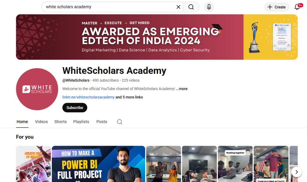As shown in the above figure, complete the process of establishing a YouTube channel through all the phases. To understand how to maintain a successful channel, enroll in WhiteScholars’ digital marketing course in Hyderabad powered by AI.
