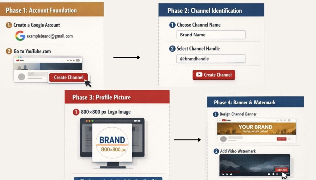 Establishing a YouTube brand channel involves a systematic process of creating a Google account, defining unique identifiers like handles, and implementing visual branding assets.